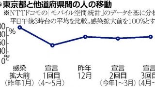 【緊急事態宣言】増えている「人の往来」…東京と他道府県で過去の宣言時よりも活発化