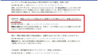ムーディーズ「韓国証券会社の格付け」をネガティブに格下げ