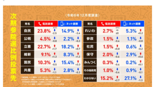 ニュー速次期比例投票先、自民 立憲両党が拮抗