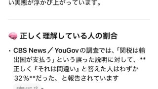 ニュー速関税 来月1日から。アメリカ国民が関税に対して理解している割合は3割に留まる