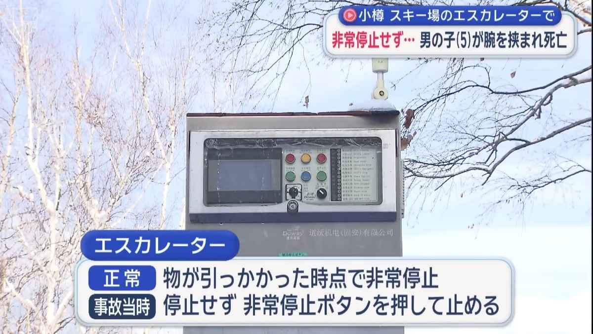 スキー場運営会社の総支配人らは同日夜、共同通信などの取材に応じ、エスカレーターに異物が巻き込まれた際に自動で非常停止する機能が作動せず、母親が非常停止ボタンを押したと説明した。朝の点検では正常に作動していたといい「誤作動なのか不具合なのか分からない」と述べた。
