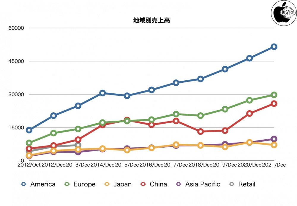 Apple、2021年10月?12月の売上高は四半期記録を更新。日本以外で売上増