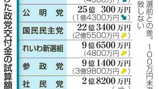 政党交付金の試算、参政9億円 大敗自民は約5億円減