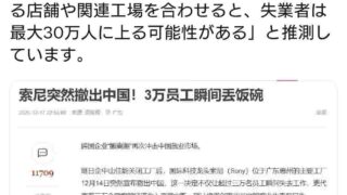 ニュー速SONYが中国の工場を閉鎖。3万人が失業、最大で30万人の失業者が出る模様