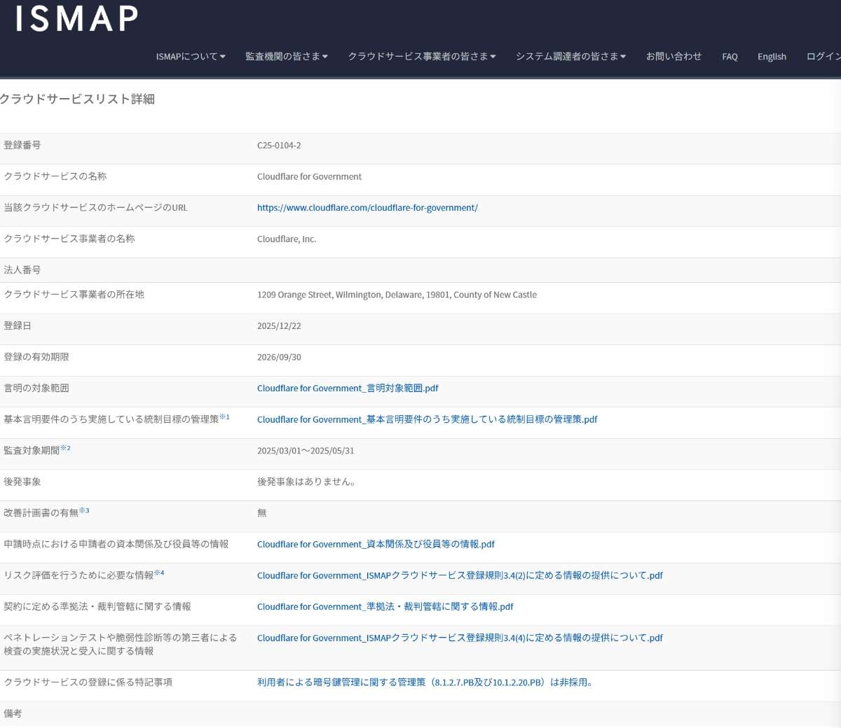 登録は2025年12月22日付。「Cloudflare for Government」として、(略)