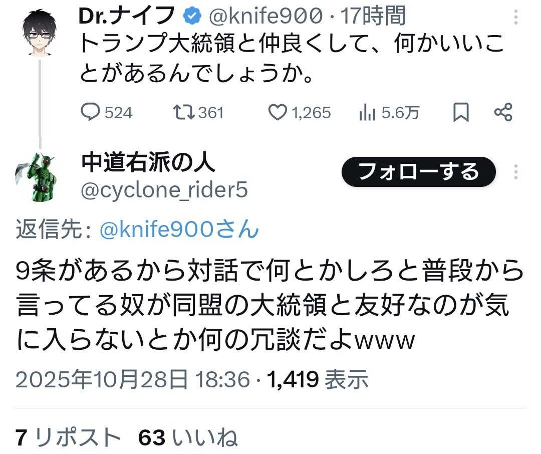 高市とトランプのコンビなら日本も核武装出来るかも知れない、そうなったらおまエラの悲願である在日米軍の完全撤退も見えてくる、何が不満なんだね?