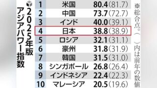 ニュー速+【アジア影響力】1位アメリカと2位中国の差縮まる…日本は4位で前年と変わらず