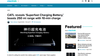 10分の充電で400km走行できる超高速充電バッテリー、中国の大手EVバッテリーメーカーCATLが発表 2024年に出荷開始か