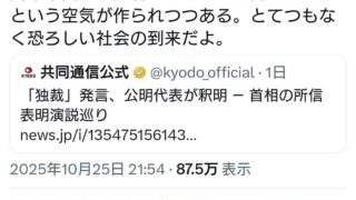 ニュー速パさん「高市早苗には批判することすら許されないという空気が作られつつある。とてつもなく恐ろしい」