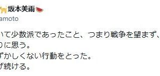 坂本美雨、衆院選の結果に思い「この結果において少数派であったこと、つまり戦争を望まず、止めようとしたことを誇りに思う」
