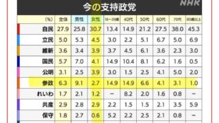 参政党、女性から全然支持されてなかった…共産よりも支持されてない