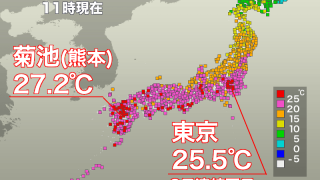 【天気予報】東京はすでに夏日で熱中症注意 西日本は30℃近くまで上がるところも(04/22 11:25)