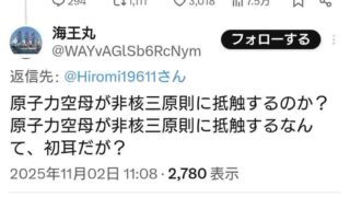 ニュー速パさん「原子力空母の上ではしゃぐ総理は右翼なら我慢ならないはずよ非核三原則はどうした」