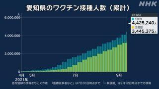 【愛知県が公表】9月1日から12日の新規感染者10777人、ワクチン未接種 8473人、2回接種後に感染 612人