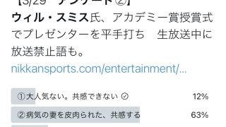 ニュー速ウィル・スミスの行動は正しい→ アメリカ人21% 日本人75% 日本人さあ…