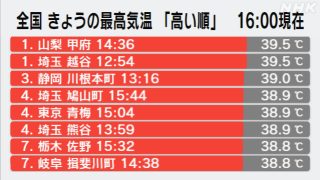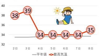 きょう2日、フェーン現象により九州北部や山陰38℃の予想 東京都心も猛暑で暑い 熱中症警戒
