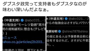 ニュー速中革連支持者「夜中3時の勉強会はパワハラ」→「夜中に知り合いの医者呼べよ高市」