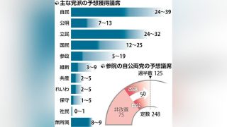 【石破】自民、過去最低の獲得議席になる可能性浮上