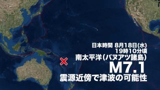 南太平洋 バヌアツ諸島でM7.1の地震 震源近傍で津波の可能性 日本への影響なし