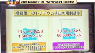 ニュー速+【科学が風評に負ける】門田隆将「トリチウム排出規制は1L1500ベクレル。WHOは飲料水10000ベクレル。それでも海に流せない状況」