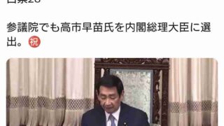 参議院でも高市早苗氏を内閣総理大臣に選出㊗