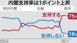 ニュー速+高市内閣、支持率横ばい75% (日経・テレ東 世論調査)