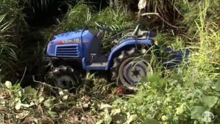「川に農耕用トラクターが転落し、車体の上の部分に足が引っ掛かった逆さづり状態の人がいる」
