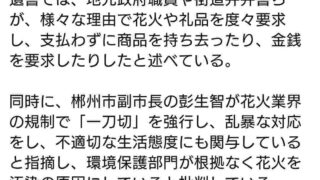 中国湖南省の花火店主が自宅の店内で爆破した後、車内で農薬を飲んで自殺